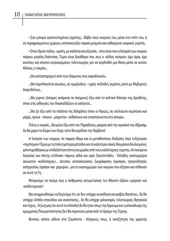 • Σαν μόνιμα εγκατεστημένος αγρότης... θάβει τους νεκρούς του, μέσα στο σπίτι του, ή σε περιφραγμένους χώρους, κατασκευάζει ταφικά μνημεία και καθιερώνει νεκρικές γιορτές. • Όταν ιδρύει πόλης - κράτη, με παλάτια και εξουσία... τότε είναι που η λατρεία των νεκρών παίρνει μεγάλη διάσταση. Τώρα είναι ξεκάθαρο πια, πως ο «άλλος κόσμος» έχει όρια, έχει κανόνες και απαιτεί συγκεκριμένες τελετουργίες για να κερδισθεί μια θέσει μέσα σε αυτόν. Αλλιώς, ο νεκρός... ...Θα κατασπαραχτεί από τους δαίμονες που καραδοκούν... ...Θα περιπλανιέται αιωνίως, σε ομιχλώδεις - υγρές πεδιάδες γεμάτες μόνο με θλιβερούς Ασφοδέλους... ...Θα γυρνά, (άσημος ανάμεσα σε άσημους) έξω από το κελτικό Κάστρο της Aριάδνης, όπου στις αίθουσες του διασκεδάζουν οι εκλεκτοί... ...Θα ζει έξω από τα παλάτια της Βαλχάλας όπου οι Ήρωες, σε ατελείωτα συμπόσια και μάχες, τρώνε - πίνουν - μάχονται - πεθαίνουν και ανασταίνονται στο άπειρο... Τέλος ο νεκρός ...θα μένει έξω από τον Παράδεισο, μακριά από την αγκαλιά του Αβραάμ, δε θα χαρεί τα δώρα των Ουρί, ούτε θα κερδίσει την Νιρβάνα! Η λατρεία των νεκρών, τα ταφικά έθιμα και οι μεταθανάτιες δοξασίες περί τυλίχτηκαν «περίτεχνα»! Έργα με τα πολυτιμότερα μέταλλα και τα καλύτερα υλικά, θαυμάσια δουλευμένα, φιλοτεχνήθηκαν με επιδεξιότητα πίστη και μεράκι από τους καλλίτερους τεχνίτες. Αντικείμενα λατρείας και πίστης στόλισαν τάφους αλλά και ιερά. Εκατοντάδες - Χιλιάδες εκατομμύρια άγνωστοι «καλλιτέχνες»... έκτισαν, κατασκεύασαν, ζωγράφισαν, έγραψαν, τραγούδησαν, απήγγειλαν, έψαλαν και χόρεψαν... για τα εκατομμύρια των νεκρών που έζησαν και πέθαναν σε αυτή τη Γη. Μπορούμε να πούμε πως ο άνθρωπος αντιμετώπισε τον θάνατο εξίσου «μαγικά» και «καλλιτεχνικά»! Θα υποχρεωθούμε να δεχτούμε ότι, αν δεν υπήρχε συνείδηση και φόβος θανάτου... δε θα υπήρχε ελπίδα επανόδου και ανάστασης... δε θα υπήρχε φιλοσοφία, τελετουργία, θρησκεία και τέχνη... Η ζωή μας (σε αυτό το επίπεδο) δε θα ήταν όπως την ξέρουμε και η αποκάλυψη της κρυμμένης Πνευματικότητας δεν θα περνούσε μέσα από το δρόμο της Τέχνης. Φυσικά, κάπου αλλού στα Σύμπαντα - Κόσμους, ίσως, η αναζήτηση της χαμένης