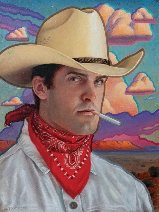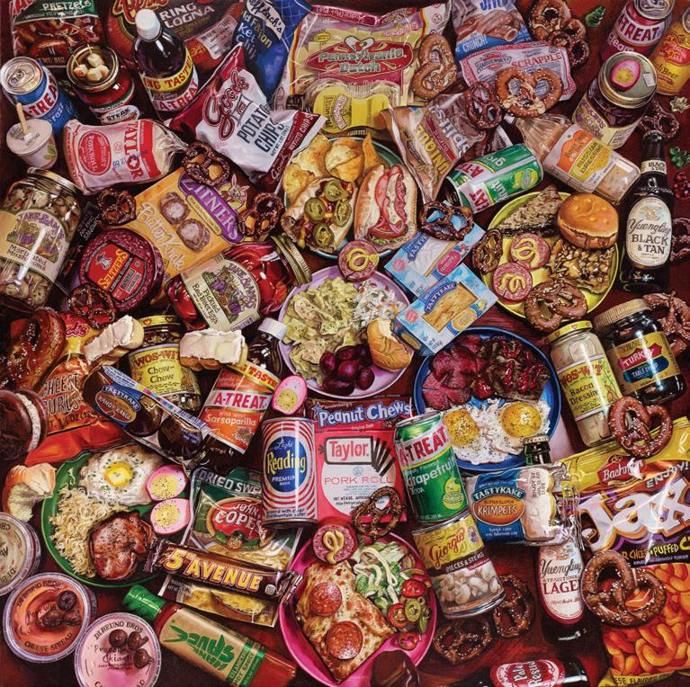 In 2021 I began work on a monumental 18’ x 20’ painting of a backyard gathering. The painting spans five large canvases that I developed separately in my studio. I assembled the full piece for the first time in the summer and fall of 2024, painting from a scissor lift during a nine-week artist residency under the high ceilings of the Bo Bartlett Center at Columbus State University in Columbus, Georgia. The painting is nearly completed now, and I’m so excited about how the project has come together. I learned a lot from working at such a large scale, specifically that I could!