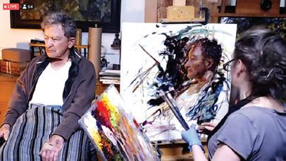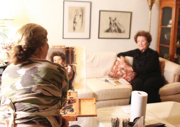 Jennifer painting Liesel, her 97-year-old neighbor, from life. This portrait was the cover of a book Liesel wrote during Covid of her experience as a holocaust survivor.