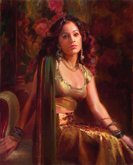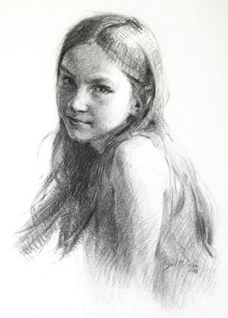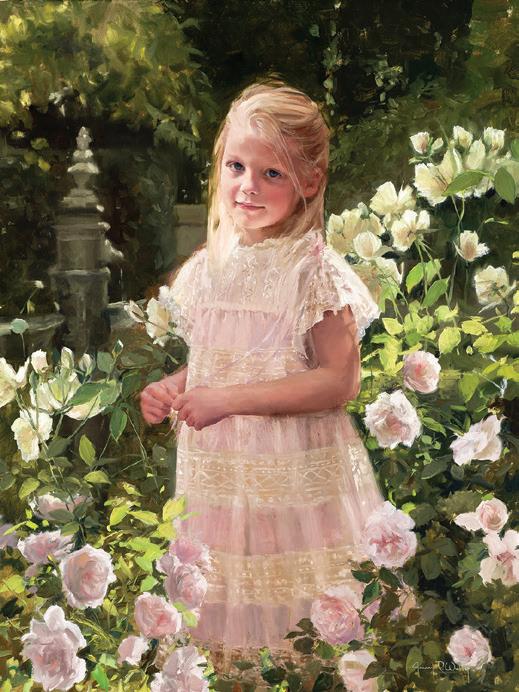 who encouraged her to find work she enjoyed, Jennifer started to focus on portraiture painting using friends and their children as her subjects. Jennifer realized, however, that she reached a roadblock when it came to color. It was in a workshop with Daniel Greene that she found the information she needed and has continued to use his palette. Jennifer confesses that her original objective was to be a wife and mother and to eventually own a house; that was the motivation she needed to sell her work. She states that she is basically a shy homebody and could not originally imagine herself traveling and meeting so many people. However, her warm, generous spirit naturally ingratiates people to her. She originally found inspiration in her garden and landscape painting and later sold these works through a gallery in Carmel, California. Later she worked for the Bradford Exchange doing collector plates while her daughters were in private school, which taught her how to work faster to meet a deadline. In was in the early 2000’s that Jennifer’s future found a firm trajectory; she was one of the top ten finalists in the Portrait Society’s International Portrait Competition which, along with being recruited by Portraits, Inc., catapulted her into the field of portraiture.