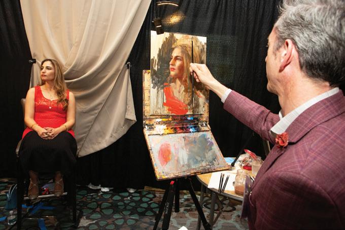 Among the crowd were the recipients of more than 35 scholarships awarded annually by the Portrait Society, including this year’s full Veteran scholarship in partnership with the Patriot Art Foundation. The kickoff event, known as “The Face-Off,” included fifteen internationally recognized artists working simultaneously in various mediums from live models. The three-hour event culminated in a dashing finish of stunning portraits and a palpable energy, as attendees circled the ballroom in fascination.