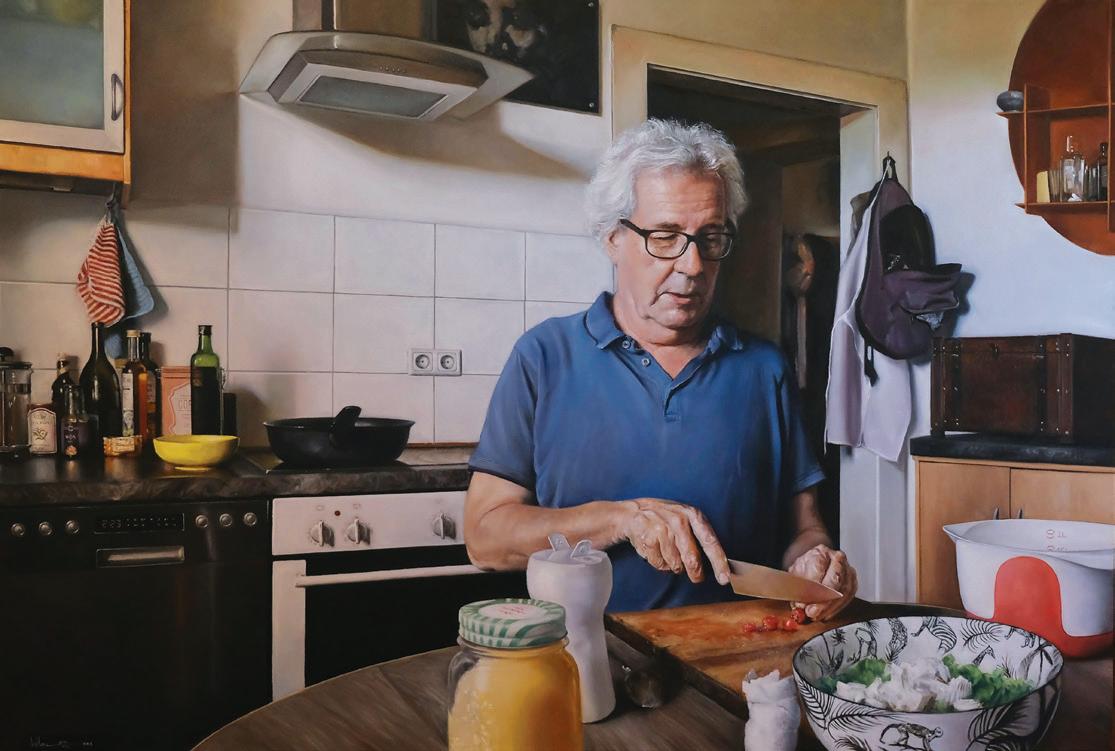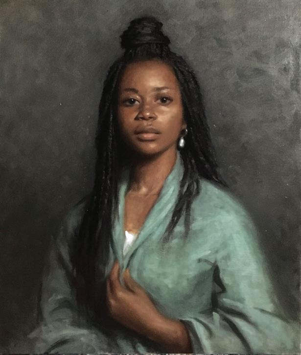 I don’t think of myself as someone who ‘paints portraits’ but as a painter who paints still-lives with people in them. Adding color, mixing color, and composing shapes creates a sense of rhythm and balance, capturing the form and life in the form. Adding brush strokes and details brings the painting life. Adding eyes to my painting is always life-giving.