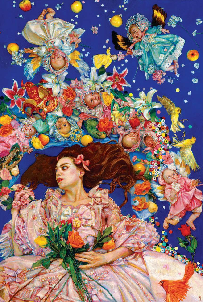 Teresa Oaxaca has carved a distinctive niche in the contemporary art world with her evocative blend of still life, portraiture, and fantasy elements. Boldly navigating the space between classical inspiration and modern innovation, her paintings are imbued with vibrant colors and dynamic scenes that transport viewers into a realm where the ordinary morphs into the extraordinary.