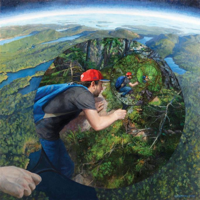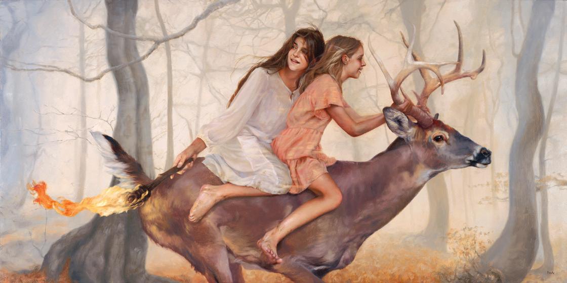 My paintings come from many sources. I love to be out in nature and alone in the woods. I also listen to books as I walk out in the forest. Some aspects of my work come from poets such as Emily Dickenson, Christina Rosetti, and Lewis Carroll.