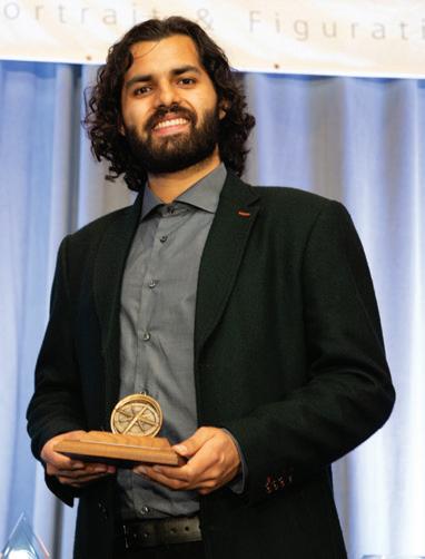 Following the announcement of this year’s awardees, we spoke with the top four artists and were struck by several shared experiences. First, each had been drawn to art from an early age. For example, secondplace winner Yash Waman, raised in a farming family, discovered clay in childhood and began shaping his own toys from the earth around him. Second, each artist continually challenges themselves, seeking further training and holding themselves to ever-higher standards. Olivia Arts nearly gave up on finding rigorous instruction until she enrolled at the Charles H. Cecil Studios, where she is now a principal instructor of drawing and painting. That classical foundation has provided the bedrock of her career. Finally, each artist emphasized the importance of mentorship. Both Mattie Ree Neal and Katya Dennison spoke of the profound influence of established masters who guided their growth and artistic maturity.