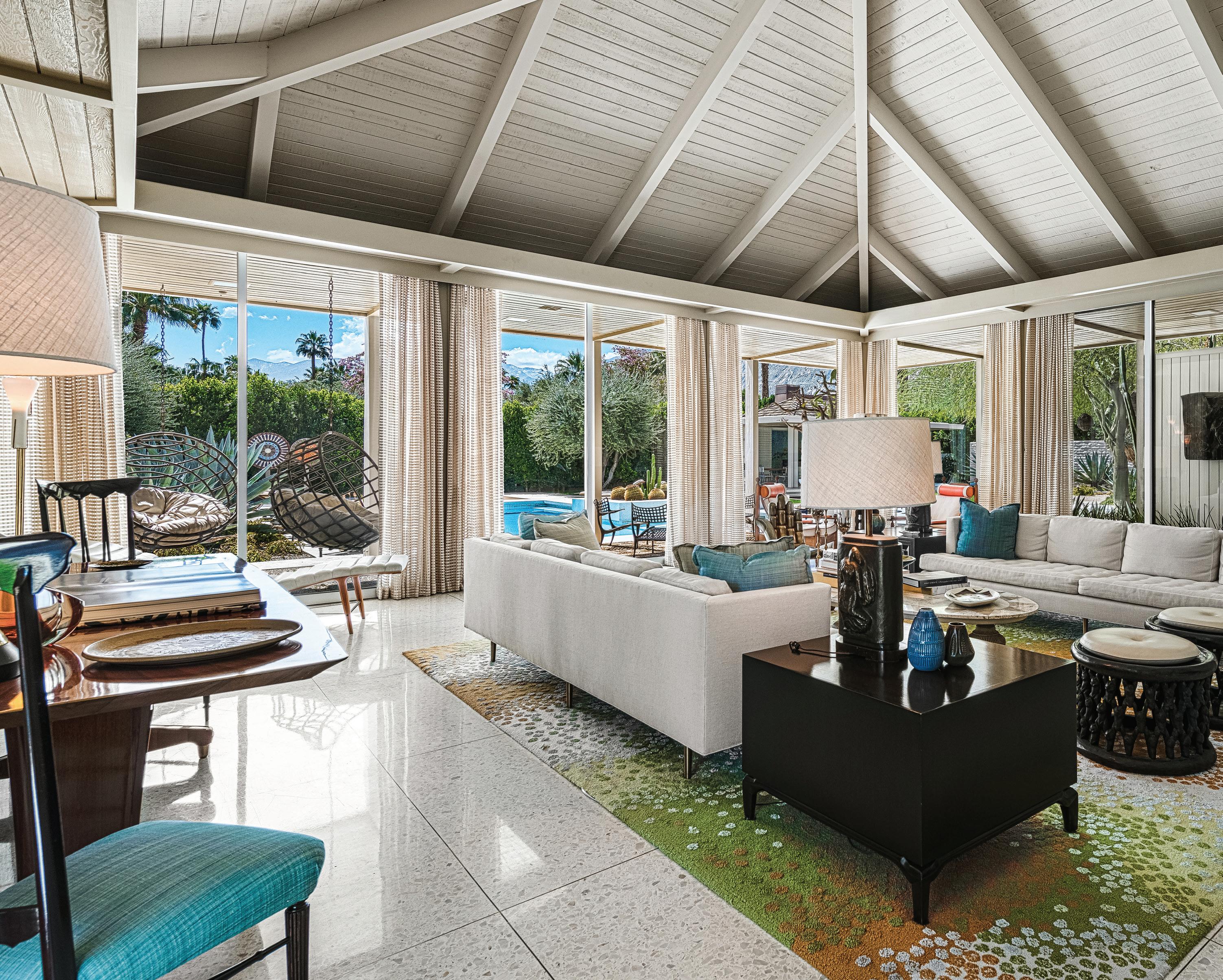 Alandmark Palm Springs estate in the heart of The Movie Colony, considered a crown jewel of mid-century modernism, is available for the first time since earning a Class 1 historic designation. Representing the pinnacle of meticulous preservation, the designation ensures that the William F. Cody-designed home will forever be protected. Coined the James Logan Abernathy residence for the couple who commissioned it in 1961, the home has over its lifetime become a destination for and a backdrop of campaigns for marquee brands, including Disney, Mercedes Benz, Herman Miller, Louis Vuitton and more. Its unique, geometric floor plan is among the features that set it apart, as it includes a series of soaring pavilions arranged in a pinwheel — creating L-shaped wings for the home’s individual living spaces. With 26-foot-high ceiling peaks finished with sandblasted Douglas fir, expansive glass, terrazzo floors and resort-style outdoor living spaces, the Abernathy home blends luxury with privacy and tranquility against a canvas of desert mountain views. Its undeniable versatility extends to entertaining, thanks to a recently reimagined kitchen finished with design-aligned Poggenpohl cabinetry and Gaggenau appliances. Nothing has been spared in this exquisite William Cody architectural “masterwork.”