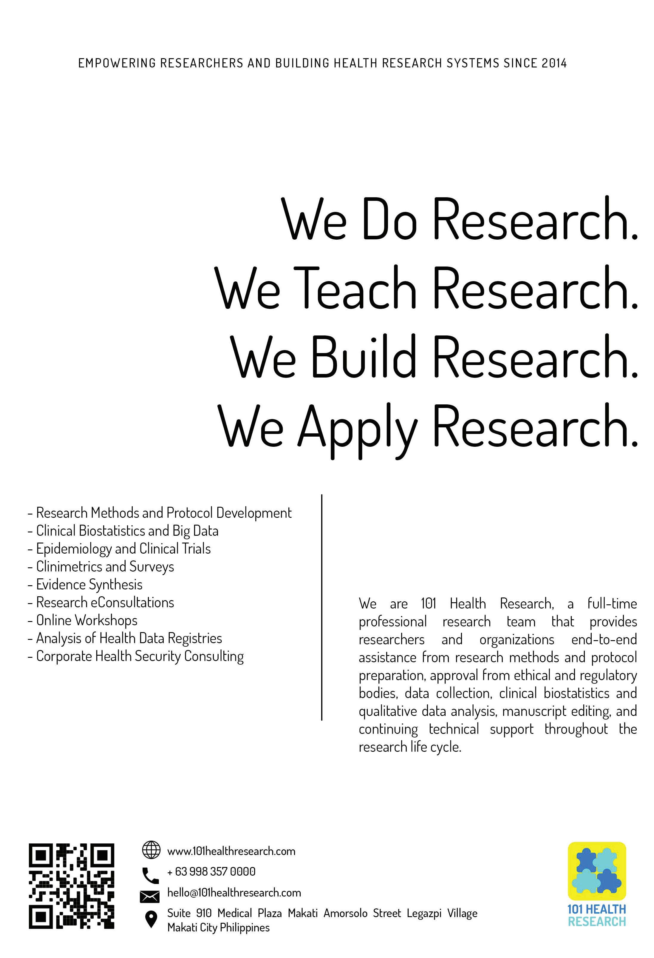 Borne out of idea-exchanges over coffee in Sydney, the founders of metaHealth Insights and Innovations, Inc. (or metaHealth) thought about riding the wave of potential health technology assessments (HTAs) as Republic Act 11223, more commonly known as the Universal Health Care (UHC) Act, was signed by Pres. Rodrigo Duterte in 2018. metaHealth prides itself as the first Filipino firm focused on conducting HTAs. meta Health envisions itself as a high-impact and innovative THINK+DO tank that empowers partners to reimagine quality and accessible healthcare toward improving lives in the Philippines and beyond.