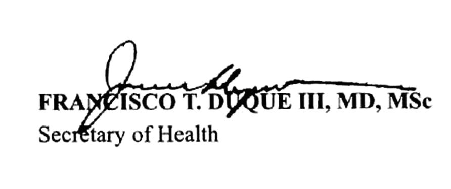 Francisco T. Duque III, MD, MSc Secretary Department of Health