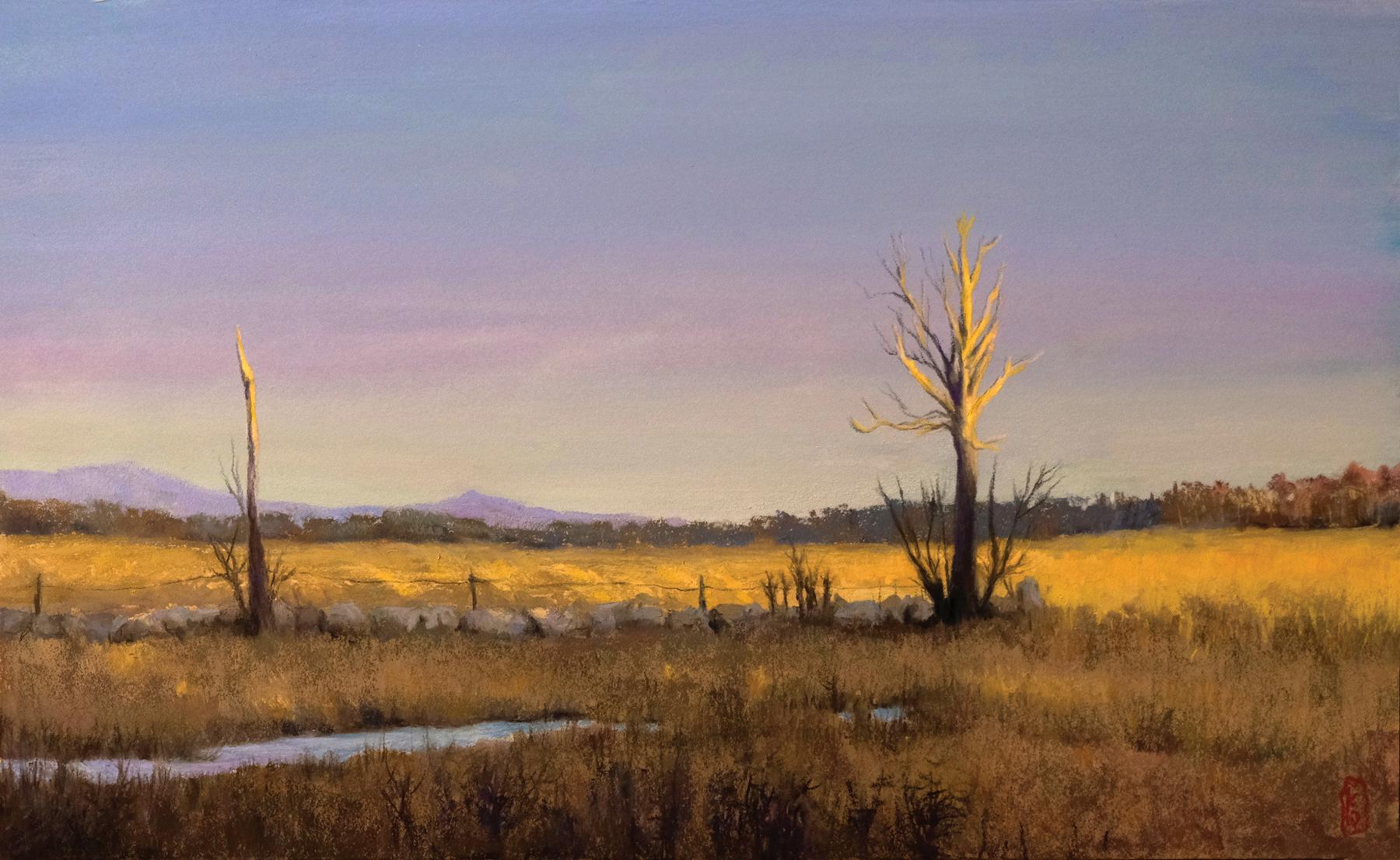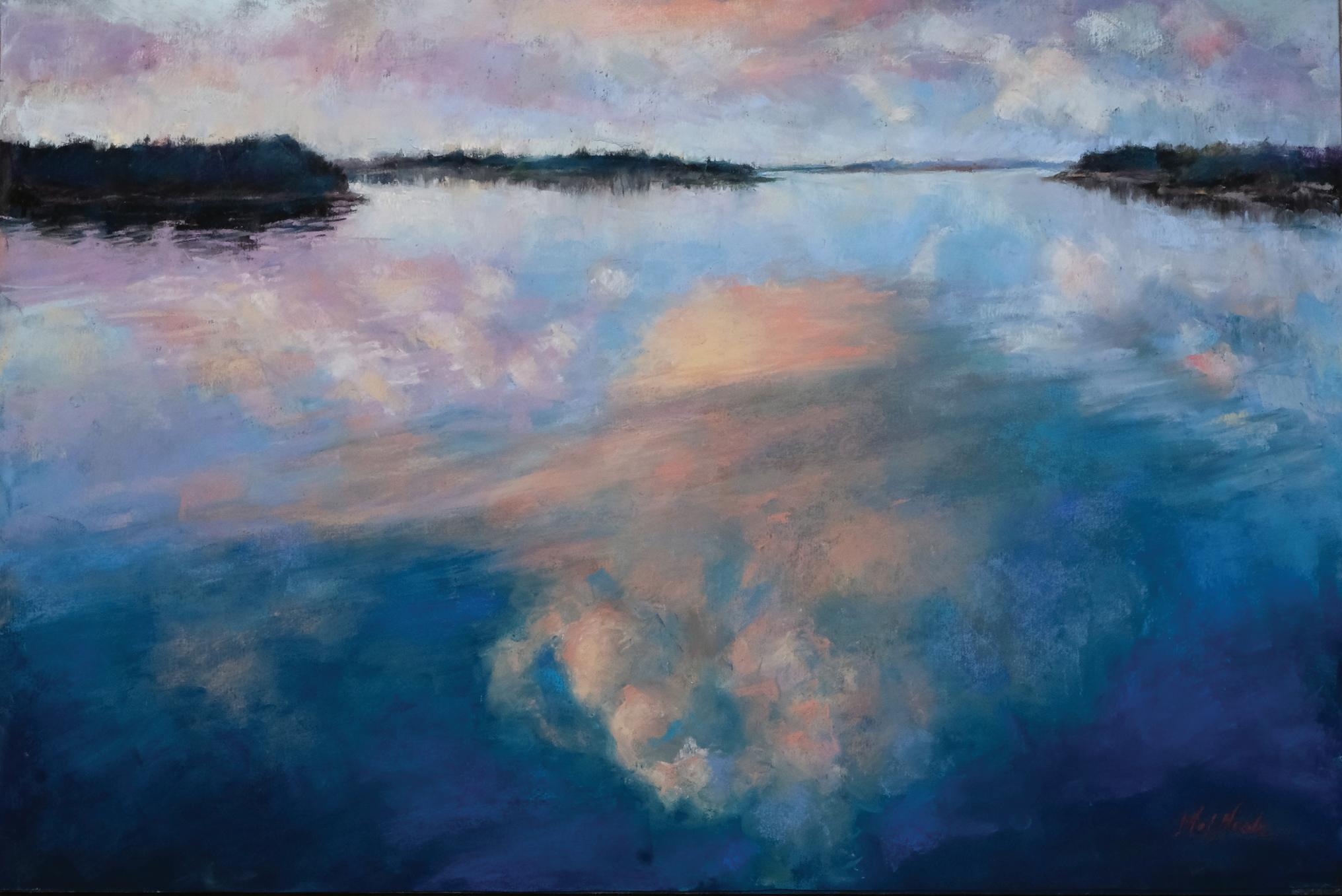 Nature is a treasure box of wonder. If you really look, you will discover the new, over and over again. Most of my paintings are inspired by the lands and waters with a 5-mile radius of my house and studio… and now, my dining room. The mystery is always there. Observe.