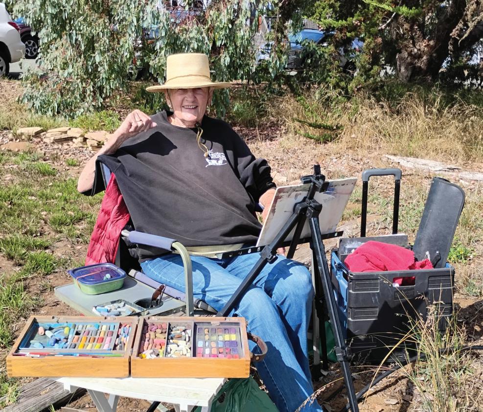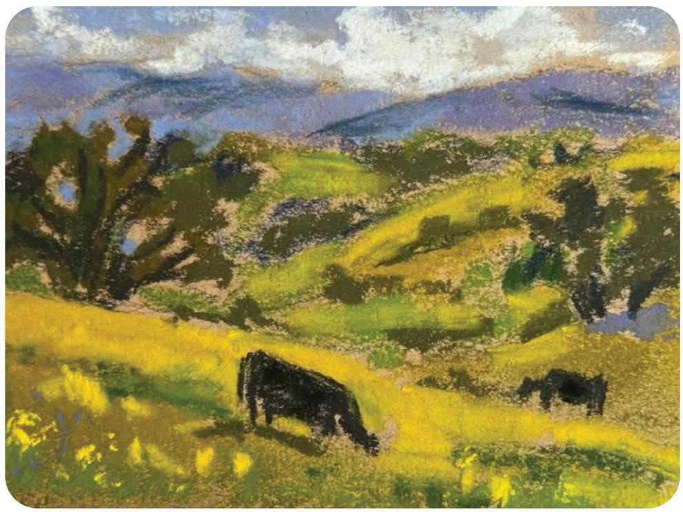 Bobbye West-Thompson, reports that a recent paintout at a friend’s expansive property included unobstructed views of Los Osos Valley and Hollister Peak, one of nine extinct volcanoes. The weather was spectacular and everyone went away inspired.