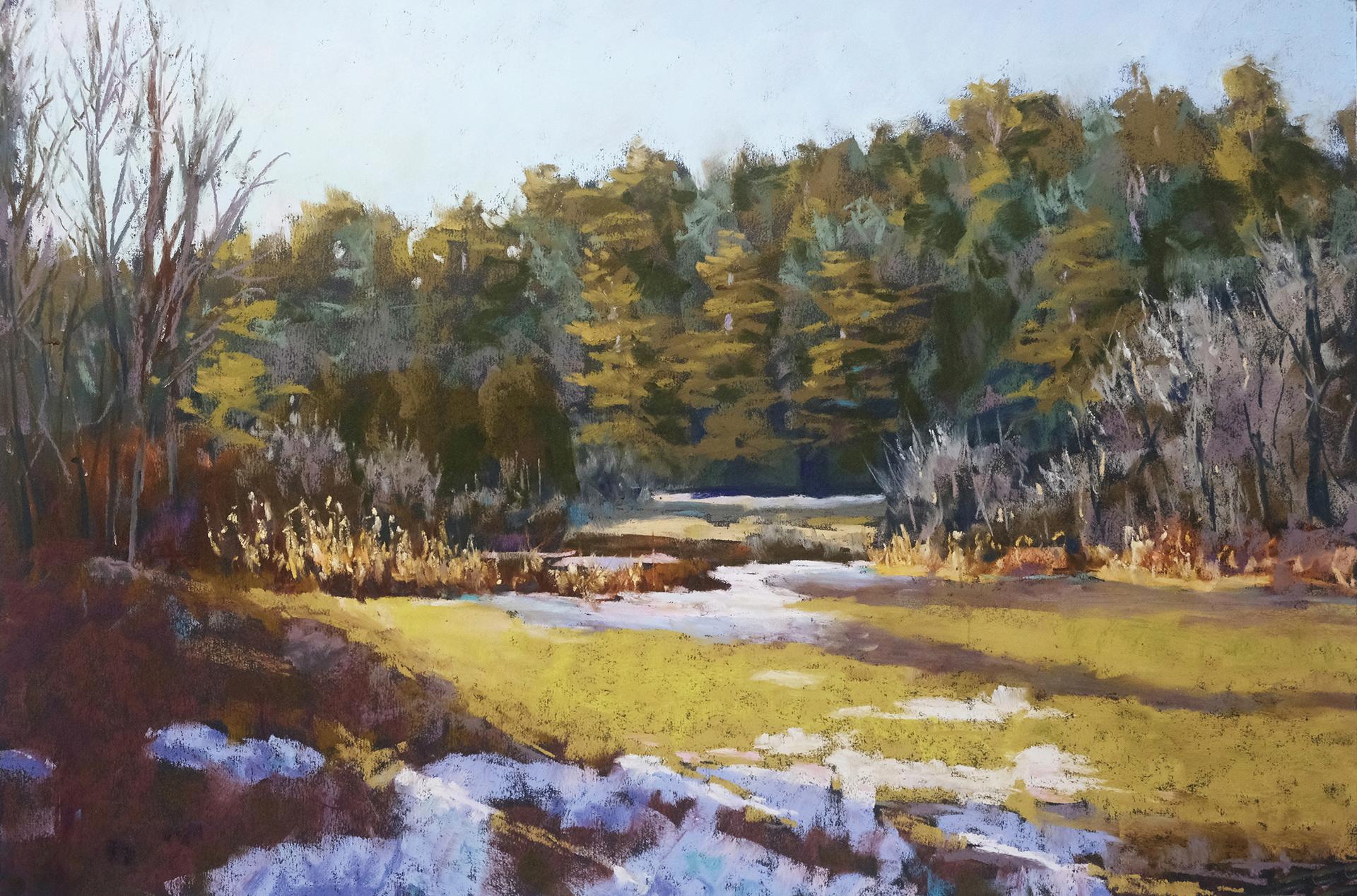 I look forward to these next few months to focus on more experimental work. As I paint throughout the year, ideas come to mind that have the potential to stimulate the creative process and break out of the proverbial box. Those ideas percolate and tumble around in my brain waiting for the moment when I put gallery work aside and can turn my attention to see if there is any promise. It is the “What If?” process that so many artists talk about. This is also a time to keep in mind PSWC’s spring Out of Bounds! exhibit as it’s the perfect venue to show those pieces that are considered beyond traditional pastel painting.