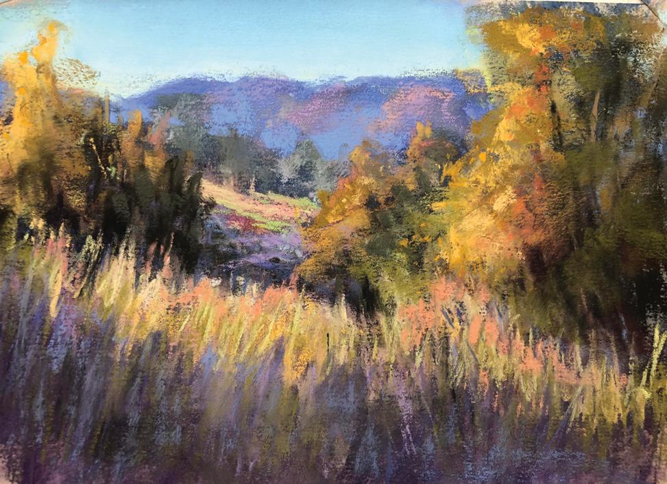 During September’s We Talk Art session, while I was taking part in a plein air event in Joseph Oregon, I launched into a lively conversation with Eve Miller. I holed up in an office at the art center that hosted the event, connected over Zoom and engaged in a great PSWCsponsored chat with Eve. She is the best storyteller, and we were all delighted to hear about her adventures in pastel painting. She shared many invaluable tips.
