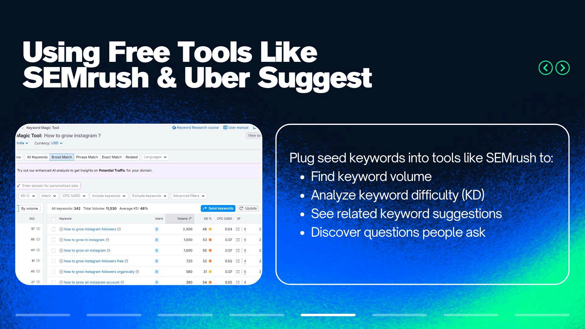 Learn a step-by-step process to uncover high-impact keywords that increase visibility, traffic, and search rankings. This guide walks you through brainstorming, using tools like SEMrush, analyzing search intent, and choosing the best keywords to boost your SEO and organic growth