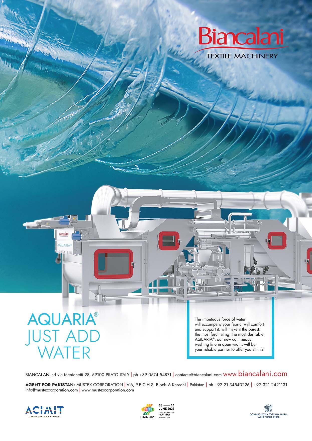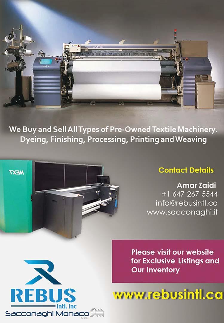 Archroma Pakistan Ltd...............................................................IFC Biancalani SpA................................................................................1 Benninger AG.............................................................................17 Chhipasons..................................................................60 CCI USA.....................................................................BC Fongs..........................................................................13 Groz-Beckert...............................................................19 Itema SpA.....................................................................3 ITMA 2023..................................................................29 ITMA ASIA + CITME 2023..........................................45 ITM 2024...................................................................IBC iTextiles Pvt. Ltd.....................................................34-35 Jet Logistics.................................................................60 MS Printing Solutions....................................................9 Rastgar.................................................................6 & 60 Rebus International Inc. ..............................................43 Santex Rimar Group....................................................15 SPGPrints....................................................................FC Staubli.........................................................................23 Suzhou Liansheng Chemistry.......................................31 Swissmem...................................................................11 The Textile Institute.....................................................21 Zhejiang Rifa...............................................................53 Classified