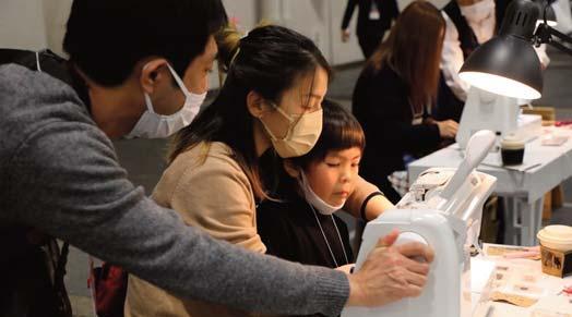 The Home Sewing Zone led by three machine manufactures and JASMA held daily workshops where visitors could learn about upcycling using scraps, and take a break at the café with "cup sleeves" of their own making. Ms Kazuko Mizuochi of JASMA said, "We had a great attendance from the very first day. We were able to familiarize participants with sewing machines and also promote upcycling activities."