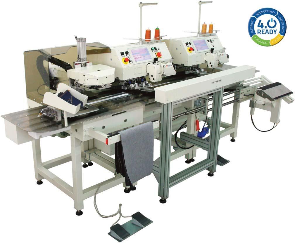 Automatic pocket setter with two simultaneous and independent sewing heads in an electric axis and a folding group was highlighted during JIAM show.