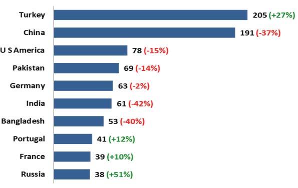 Other significant export markets included the United Arab Emirates, the Netherlands, Germany, and Spain, each surpassing the $1 billion mark in imports from Pakistan. Additionally, Italy, Saudi Arabia, Afghanistan, Bangladesh, Malaysia, and Belgium each imported over $500 million in Pakistani goods, underscoring the diversified nature of Pakistan’s export destinations.