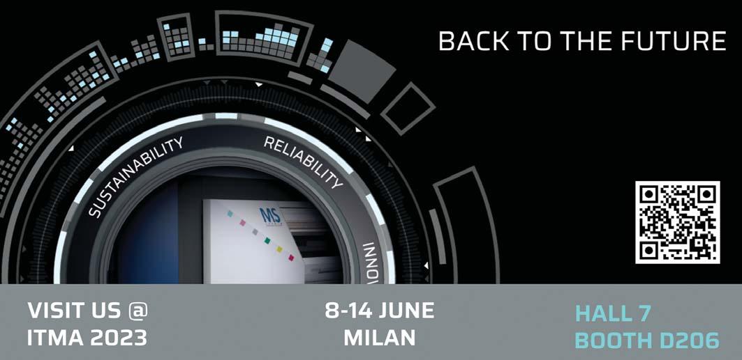Way2ITMA: Recycling Technologies offered by VDMA members . . . . . . . . . . . . .30 UCMTF: French Textile Equipment Manufacturers’ Association . . . . . . . . . . . . .32 Swiss textile machinery companies focus on environmental priorities . . . . . . .34 Jakob Müller presents mymueller and mymuenet . . . . . . . . . . . . . . . . . . . . . .35 Automation is central for Swedish textile machinery . . . . . . . . . . . . . . . . . . .36 TMAS: Weaving remains the bedrock of the textile industry . . . . . . . . . . . . . .38 DyStar features new product & process innovations . . . . . . . . . . . . . . . . . . . .39 TOYOTA showcases three JAT 910 airjet weaving machine models . . . . . . . . . .40 Itema displays new EVO range . . . . . . . . . . . . . . . . . . . . . . . . . . . . . . . . . . .42 Crealet introduces narrow weaving warp tension control system . . . . . . . . . . .43 Picanol to unveil revolutionary rapier machine at ITMA 2023 . . . . . . . . . . . . .44 Uster Fabriq Assistant automates data preparation for key decisions . . . . . . . .46 MEMMINGER-IRO latest developments . . . . . . . . . . . . . . . . . . . . . . . . . . . . . .47 PROTECHNA Herbst . . . . . . . . . . . . . . . . . . . . . . . . . . . . . . . . . . . . . . . . . . .47 VANDEWIELE: Expert in carpet weaving machines . . . . . . . . . . . . . . . . . . . . .48 MESDAN yarn splicing technology & laboratory testing equipment . . . . . . . . . .50 Sedo Treepoint Systems . . . . . . . . . . . . . . . . . . . . . . . . . . . . . . . . . . . . . . .50 SAVIO presents PROXIMA Smartconer® automatic winder . . . . . . . . . . . . . . . . .51 TITAN for carpet sewing . . . . . . . . . . . . . . . . . . . . . . . . . . . . . . . . . . . . . . .51 Santex Rimar Group: Green ambitions with environmental - friendly machinery . .52 Saurer at ITMA 2023 – Shaping the future of textiles . . . . . . . . . . . . . . . . . . .54 Latest THEN Airflow developments . . . . . . . . . . . . . . . . . . . . . . . . . . . . . . . .56 XORELLA: New XO AUTOMATION system . . . . . . . . . . . . . . . . . . . . . . . . . . . .57 JK Group & MS Printing Solutions . . . . . . . . . . . . . . . . . . . . . . . . . . . . . . . . .58 TOMSIC Nep & Trash tester . . . . . . . . . . . . . . . . . . . . . . . . . . . . . . . . . . . . .60 REVECOL® by ERCA, the circular revolution takes a step forward . . . . . . . . . . .60 Loepfe: YarnMaster® PRISMA Autoclearing . . . . . . . . . . . . . . . . . . . . . . . . . . .62 Biancalani: AQUARIA® revolutionary finishing process . . . . . . . . . . . . . . . . . . .63 35 40 38 42 44 52 34 54