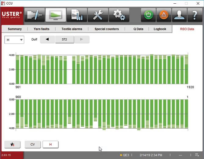 When an operator locates a yarn break, the type of break is indicated at the spinning position. Different signals categorize the problem as either Slip, Off Quality, Rogue or RSO 3D alarm. At this mill, operators are instructed to deal exclusively with yarn breaks, but not with the RSO 3D alarms. These are the responsibility of highly-trained technicians, because RSO 3D alarms indicate a faulty setting at the spinning position, and repairing them is both necessary and time-consuming. The RSO 3D alarms are displayed to the technicians by the Sentinel LEDs, and also on the Quantum control unit (CCU), as well as on the RSO 3D Quality Map.