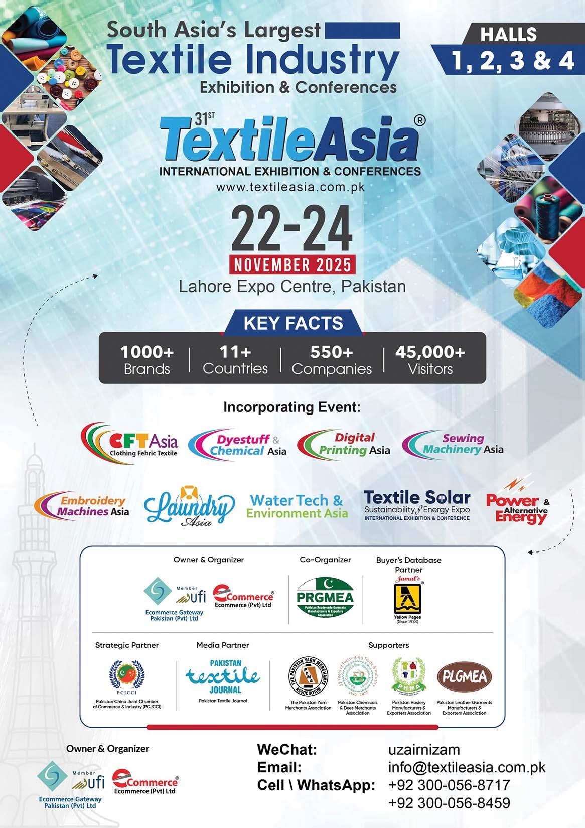 Dates: November 22nd to 24th 2025. Venue: Lahore Expo Centre. Textile Asia 2026, Karachi