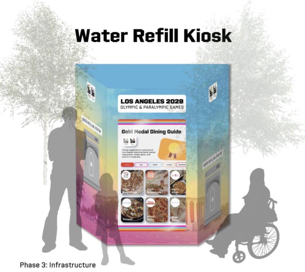 As part of our LA28 Summer Intern Cohort’s capstone presentation, we were challenged to address the 20% of Angelenos who believe that the 2028 games will leave a negative impact on the city. In collaboration with the Sustainability team and representing the Games Planning and Delivery department, we decided to address concerns for gentrifcation and potential impact onsmall business owners and street vendors. We used GIS to create a heat island map focusing on areas around Gamestime stadiums, identifying empty lots or public spaces to create impactful interventions. We took inspiration from heat resilience centers to propose a water refll station that can also serve as free advertising for small businesses impacted by Gamestime infrastructure and security, sponsored by LA28. Our team presented this to our co-workers including the C-suite.