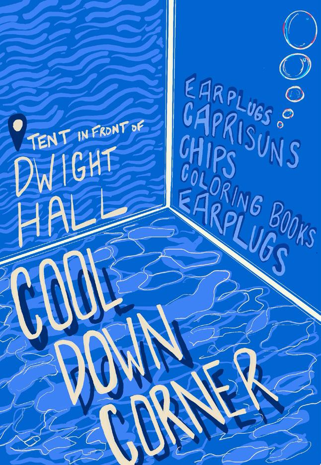 2023 Cool Down Corner with crafts and earbuds 2022 fyer outlining all amenities