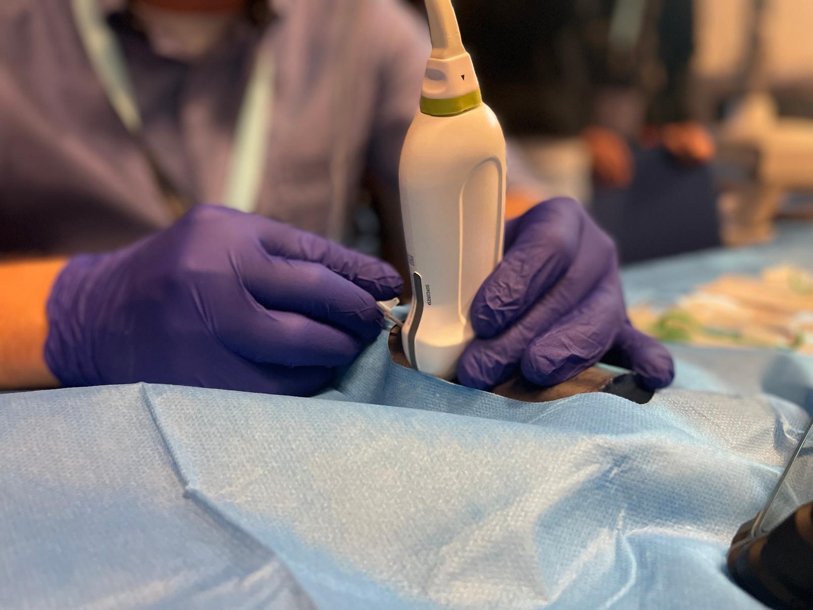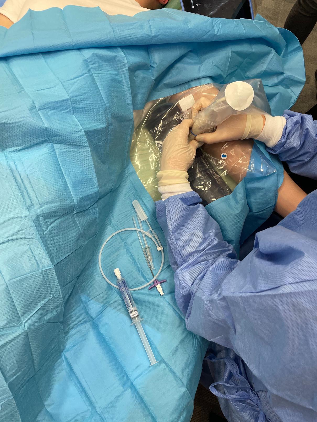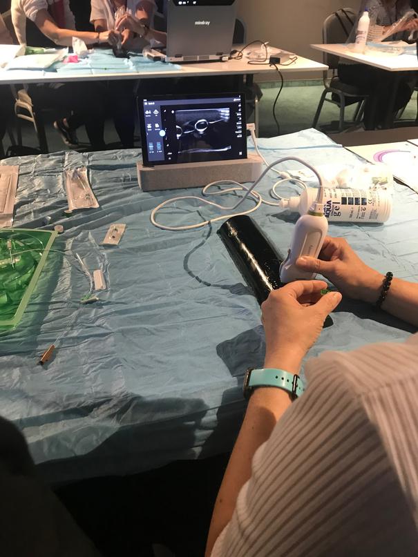 Również w siedzibie towarzystwa zorganizowano dwa spotkania, podczas których uczestnicy uczyli się implantacji wkłuć pośrednich pod kontrolą USG (06 października), a kilka dni później (10 października) poszerzali swoją wiedzę z kaniulacji naczyń obwodowych.