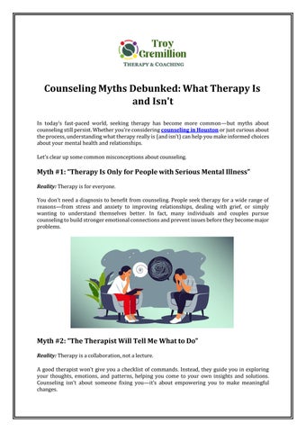 Whetherit'sdailydisagreementsormoreseriousemotionalissues,familytherapistsareessential in helping people deal with challenges at home. They don’t fix families; they help them understand,grow,andreconnect.Don'thesitatetogetintouchwithafamilytherapistinHouston ifyouthinkyourfamilyneedshelp.Therighttherapistcanmakeyourhomefeelmorebalanced, supportive,andconnectedagain.
