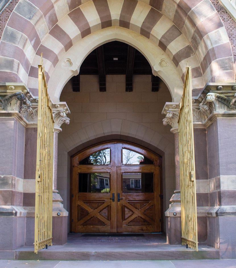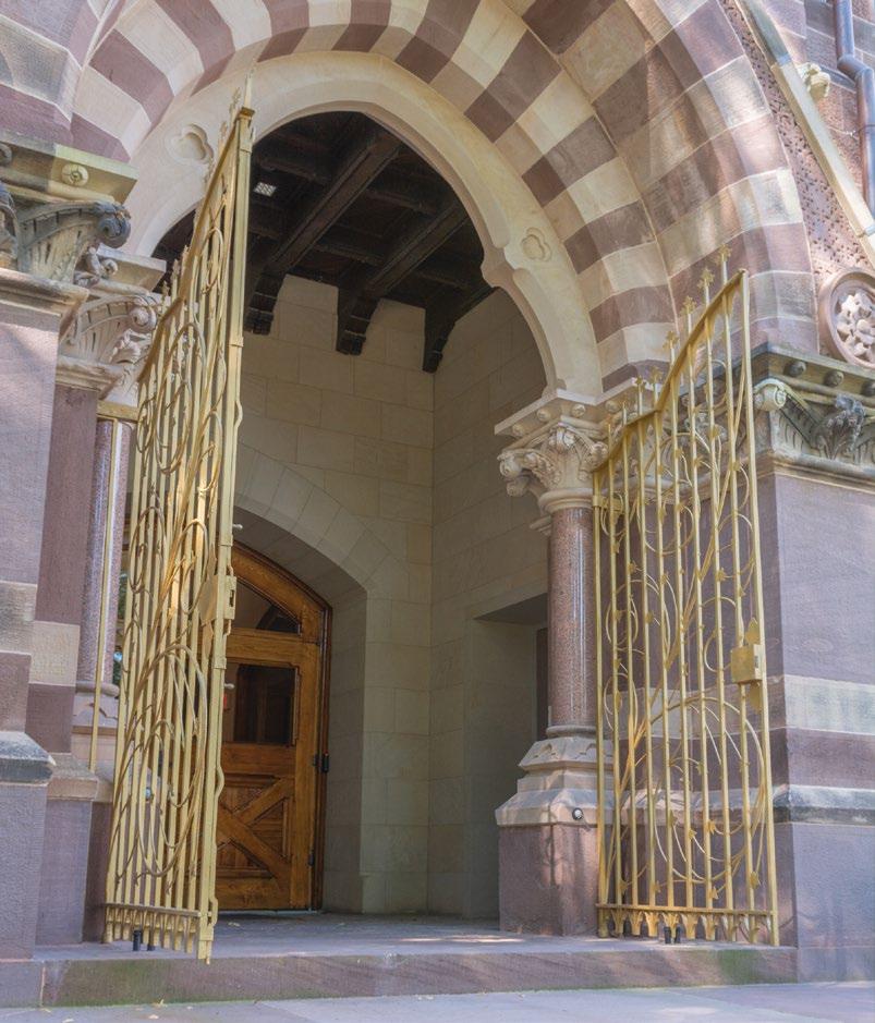 A gift from Trustee Heather Sturt Haaga helped to make possible the transformation of the Stuart Hall gates on the original entrance facing Alexander Street, shown here in before and after images. “The exterior reflects the great history of Princeton Seminary and the interior meets the needs of the twenty-first century learner,” says Denis Castañón, associate vice president of operations. “It’s exciting to see students learning in this historic building restored to its original splendor.”