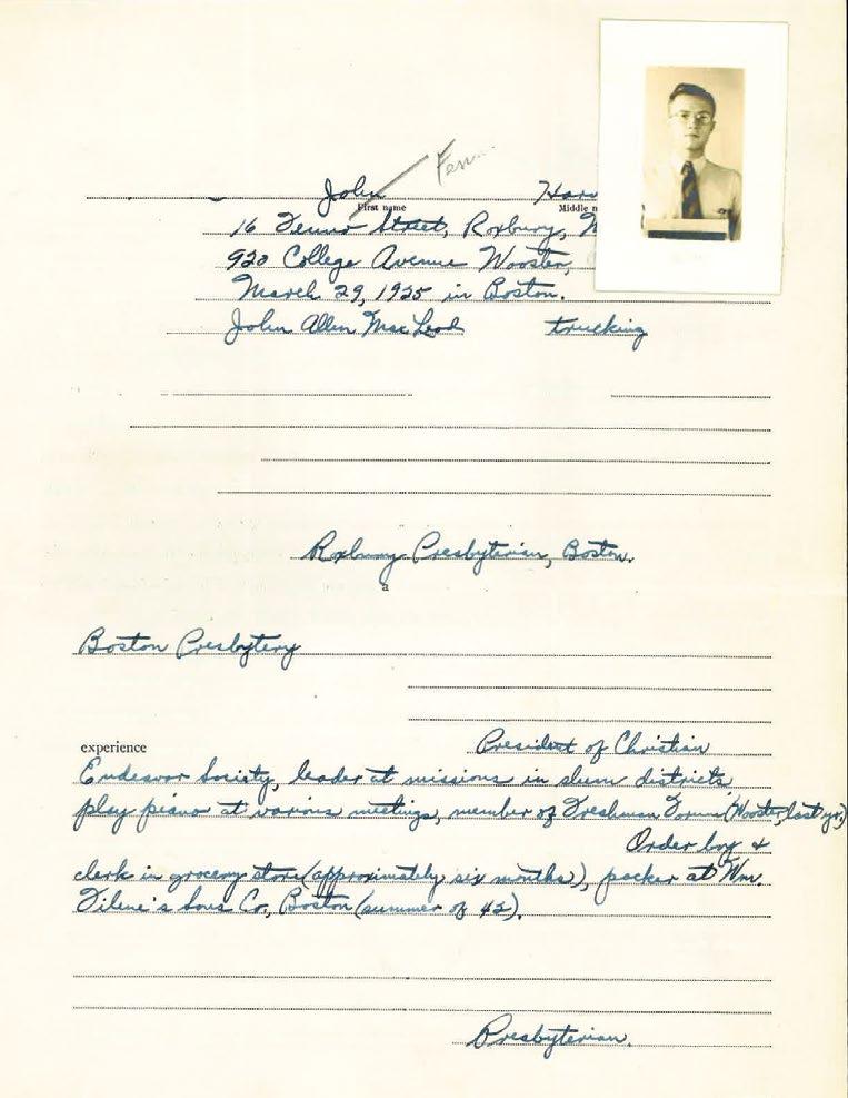 Rather than purchase commencement robes, members of the class established an endowed fund. Story based on interviews with three alums (Brewster Gere, James McCormick, and Stanley Wood).