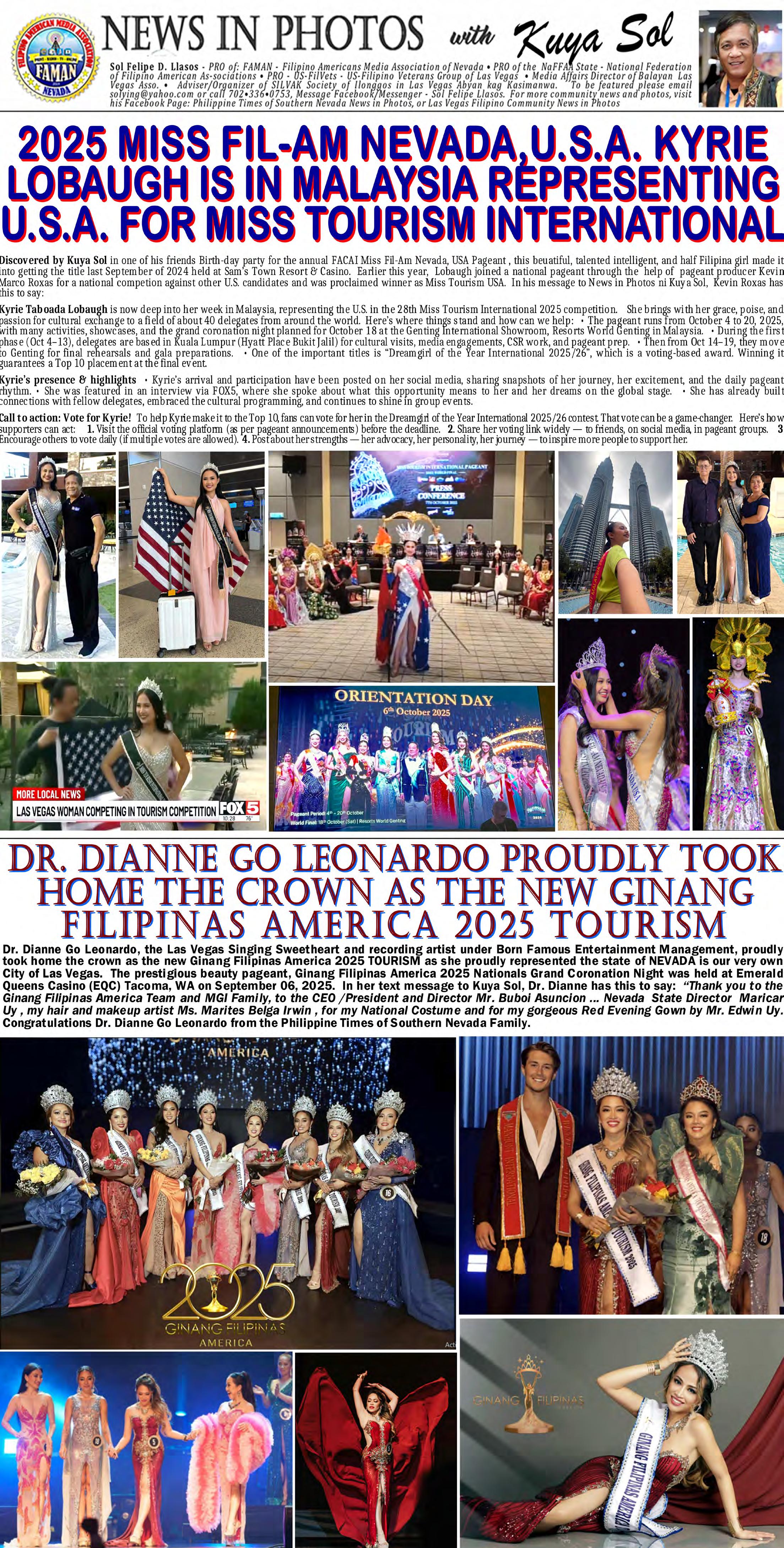 When the Saints come marching in: awe-inspiring Santa Cruzan at the NaFFAA Fiesta Filipino 2025 Of heavenly hosts and adorable angels, the Fiesta Filipino by NaFFAA Nevada led by Gloria Caoile along with President Jaque De Joya, President and Doc Mike Sta Juana, Vice President was an undisputed roaaring success and many were blown-away by the Sagala processing organized by Ms. Chel Mendoza with community leader and stalwart sponsor and supporter, Cin-cin Landeros of Transpacific Multiservices as the beautiful Reyna Elena. I am thankful for your trust in letting me serve as master of ceremonies and for letting my daughter, Brooklyn Mackenzie Viernes Moraes serve as one of the Ave Maria Angels. Here is a look at that unforgettable Procession. Thank you Chel’s Kitchen for the delectable and healthy, yummy lunch! What a beautiful event it was! Congratulations to all especially to NaFFAA officials and volunteers for your success!!!