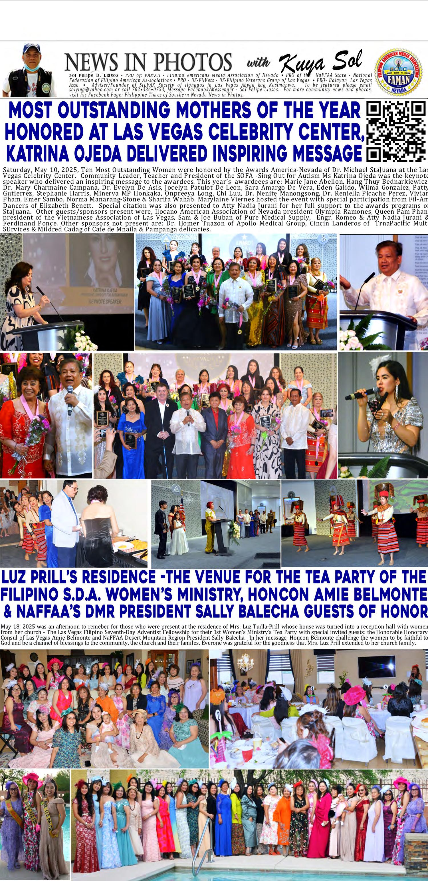 Congratulations to all of the awardees of 2025 Outstanding Mothers led by Dr. Michael Sta Juana, president of the America Awards Nevada, most especially my friend Jocelyn De Leon who is truly deserving! Thanks for having me as youe constant master of ceremonies. I feel so blessed to also receive recognition as a proud mother to my beloved children, Godric Matthew, 16; Brooklyn Mackenzie, 3; and my precious dogs, Ragamuffin (Muffin), 5 and Argonaut
