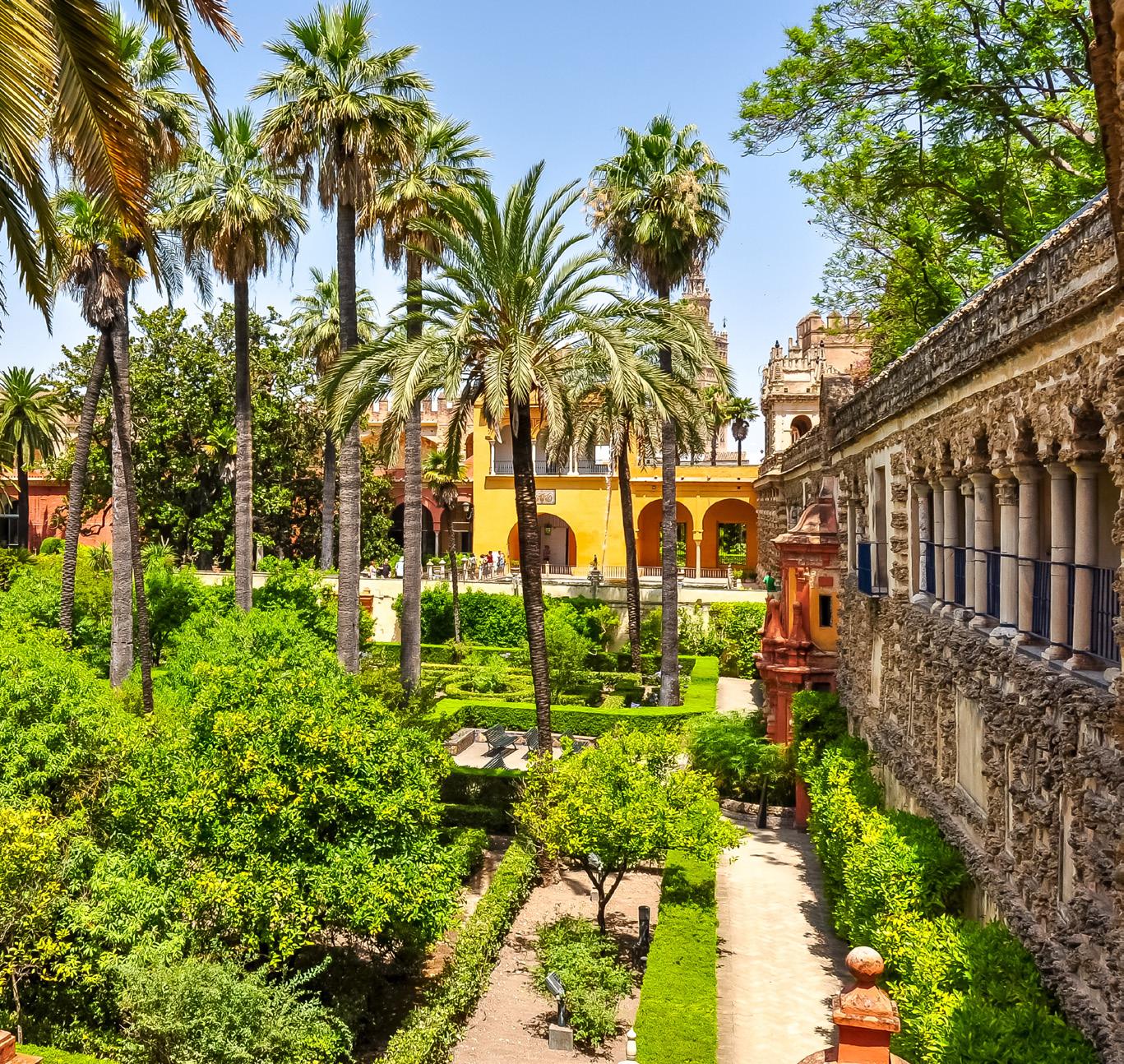 eeuwen stonden diverse koningen aan het roer en ieder van hen liet zijn eigen sporen achter”, fluistert een bewaker mij enthousiast toe. Het koninklijke paleis wordt omgeven door prachtige tuinen - met meer dan 187 plantensoorten en talloze fonteinen -, die samen goed zijn voor een oppervlakte van ruim 75.000 m². Het is heerlijk om even te ontsnappen aan de gezellige drukte van de stad en hier rond te wandelen of om simpelweg te genieten van al het moois op een van de met mozaïek beklede bankjes. Over koninklijk en romantiek gesproken, wist je dat onze koning zijn Máxima in Sevilla heeft ontmoet?
