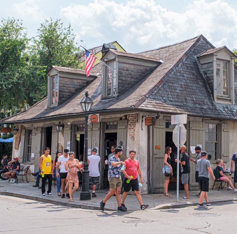 gebouwen van New Orleans op de hoek van Bourbon Street en St. Philip Street. Wil je meer leren over de stad, maar ook over Mardi Gras? Bezoek dan Jackson Square. Hier vind je historische gebouwen zoals St. Louis Cathedral en The Presbytère Presbytere, een museum over Mardi Gras.