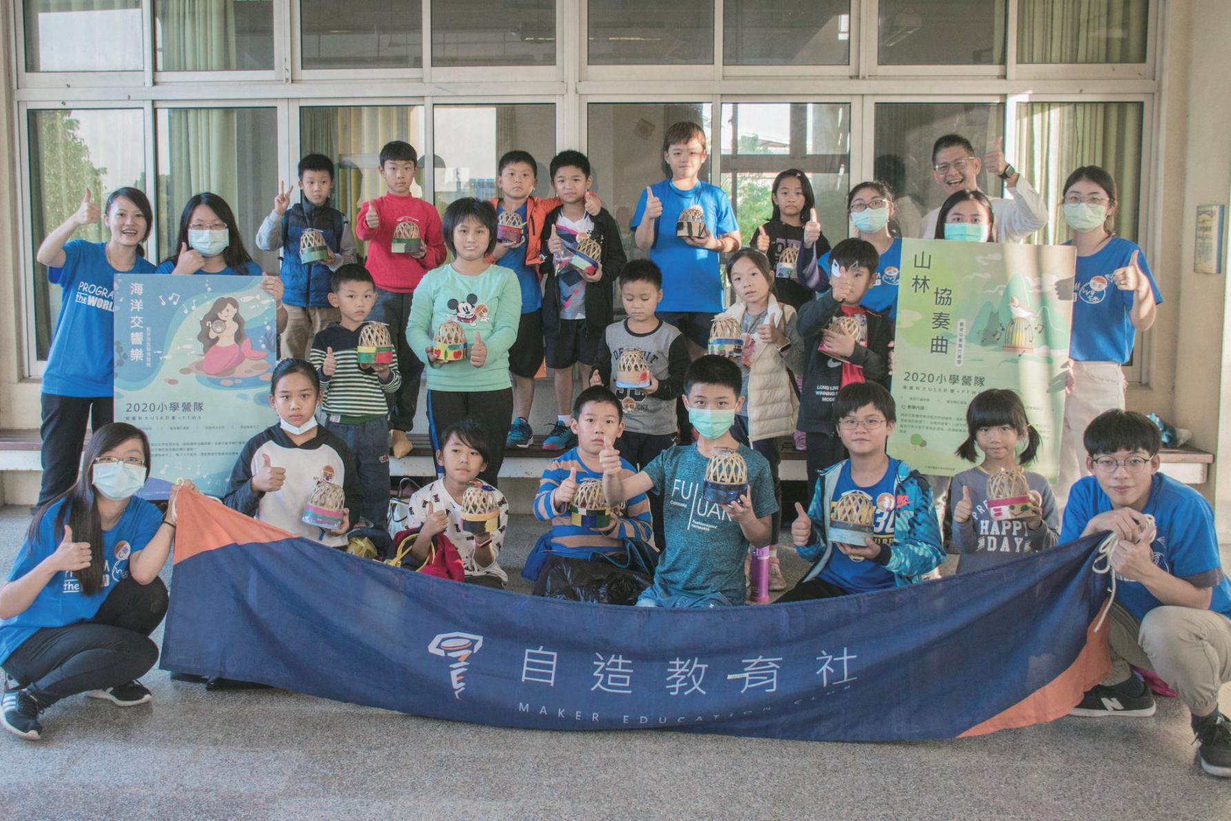 今年自造教育社的學生設計了兩套課程 「山林協奏曲」和「海洋交響樂」。山林協 奏曲的作品為智控平衡鳥竹籠燈,利用傳統 竹編的技巧結合時下最夯的資訊科技,竹籠 燈的開關是用雷射切割製成台灣特有種動物 的圖像,藉由觸壓的方式來將燈打開。燈的 底座則是讓孩子發揮創意彩繪,讓孩子打造 出獨一無二的智控平衡鳥竹籠燈。海洋交響 樂的作品為藍牙拇指琴傳聲機,拇指琴的主 體是用椰子的外殼製成,回收再利用達到了 環保的目的,拇指琴內部放了可連接藍牙的 電路板。拇指琴的的外部可以讓孩子們自行