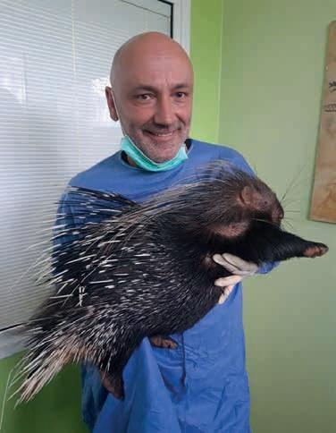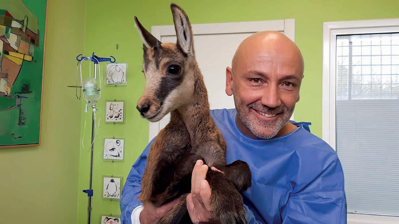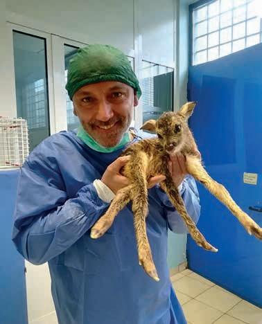 se o poco più. Ho cominciato con la fauna selvatica nel 2001 quando un agente della polizia provinciale, Dorino Stecchero, mi ha portato un capriolo perché il suo veterinario di fiducia era oberato di lavoro. Avrei dovuto fare l’eutanasia per le troppe ferite, ma ho provato a salvarlo. Non ce l’ho fatta e ci sono rimasto malissimo. Dorino, anche lui amante degli animali, ha portato via la carcassa in un sacco senza rivolgermi la parola e ho ancora addosso la sensazione di malessere causata dalla morte del capriolo. Pensavo non ne avrei più avuti in cura ma dopo qualche mese Dorino è tornato con un altro capriolo. Ho iniziato così, con un approccio simile a quello con gli animali domestici: ecografie, radiografie, prendere la vena per le terapie... E nel tempo tanto, tantissimo studio.