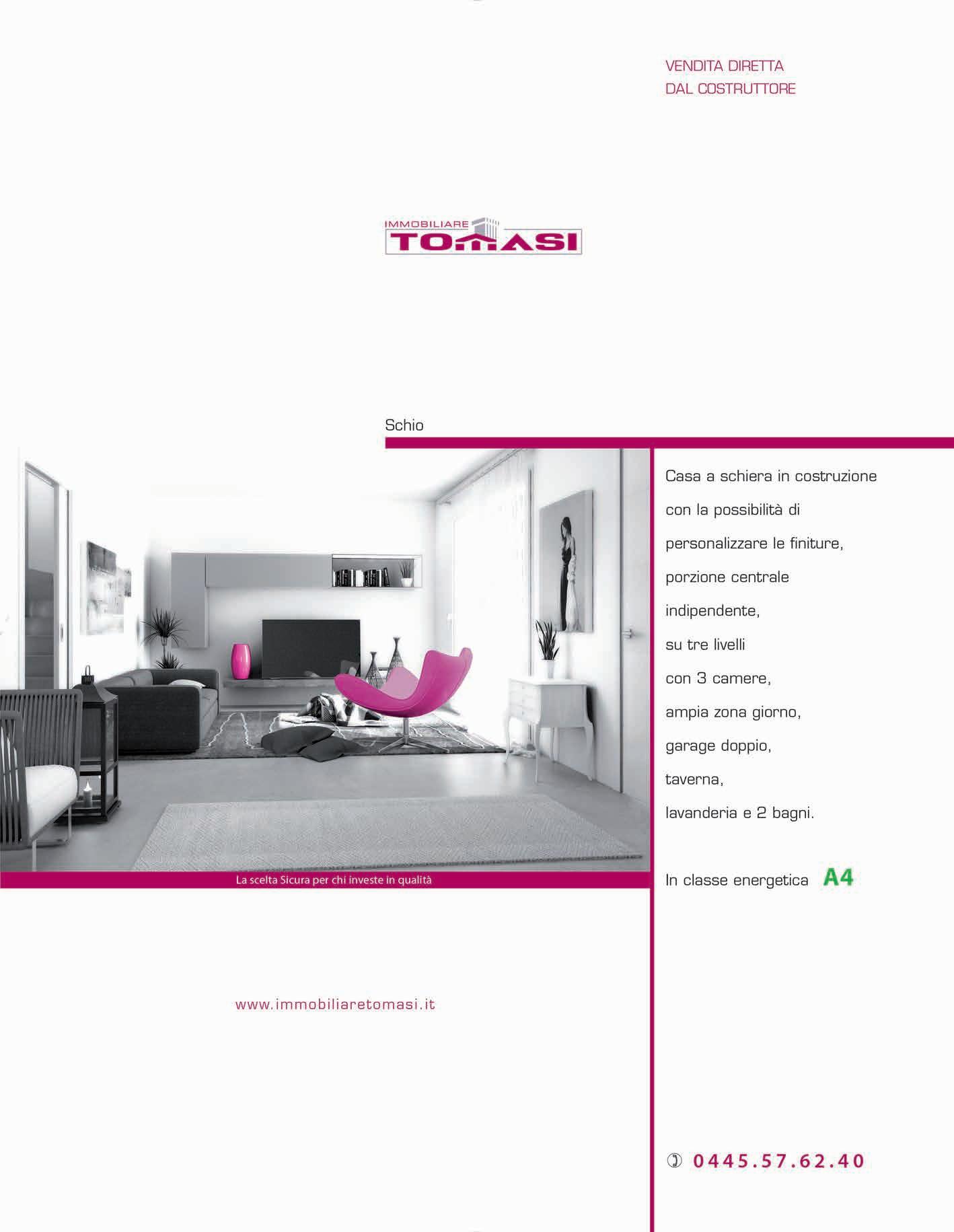 Santorso – Bifamiliare al grezzo. Ampio soggiorno open space con vetrate sul giardino, cucina separata, 3 camere, 3 bagni, garage doppio di 52 mq. Euro 330.000 Cod. 5693 - Ape in corso