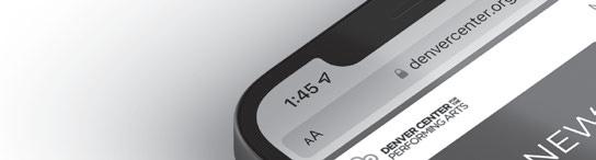 We proudly support the Denver Center for the Performing Arts and its mission to engage and inspire through the transformative power of live theatre. Cue the Lights! CHRIS BALCH Partner and Firm Chair | 303.295.8000 555 17th Street, Suite 3200 | Denver, Colorado 80202 | www.hollandhart.com 303.750.6060 PhaseOneLandscapes.com email@phaseonelandscapes.com incredible outdoor spaces for your home or business Creating unique outdoor living is our mission. Helping you realize your dreams …. Is our passion! Contact us today for your design/build consultation 303.750.6060 PhaseOneLandscapes.com email@phaseonelandscapes.com