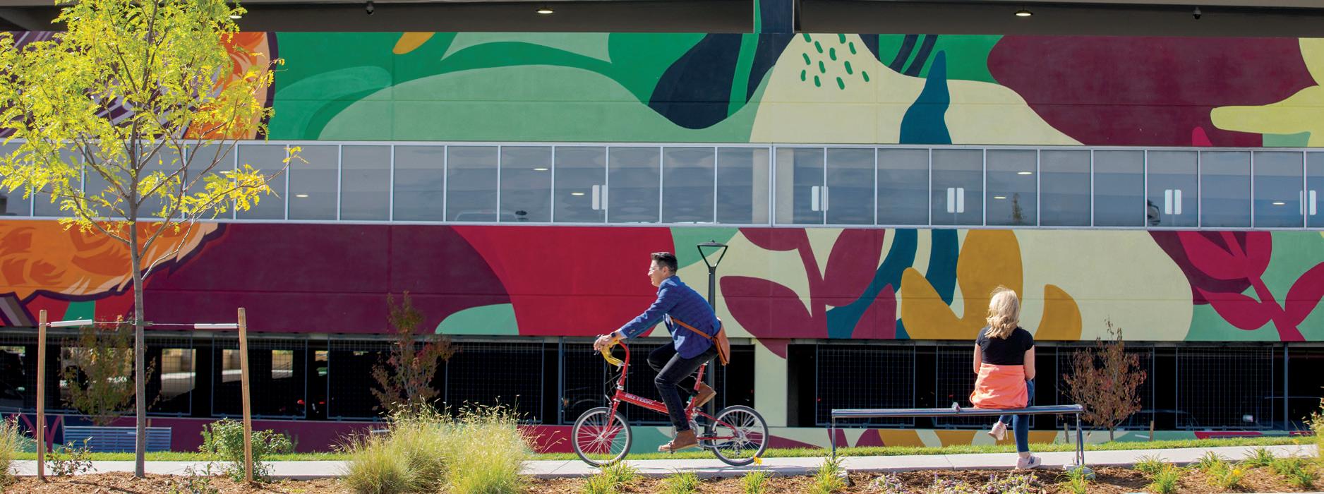 RidgeGate is designed to integrate natural and urban amenities, including light rail, a variety of living options, and a mix of retail uses, offices, schools, cultural facilities, parks and recreation— all within close proximity. A network of bike paths and walking trails connect all areas of RidgeGate with its neighbors, helping to reduce traffic and fostering a sense of community.