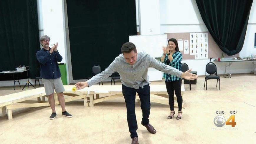 TOP: CBS4 The ARTS | (l-r) Actor Gareth Saxe, Multi-Media Journalist Dillon Thomas & Actress Desirée Mee Jung in a choreography rehearsal for Much Ado About Nothing | BOTTOM: 20th Chalk Art Festival