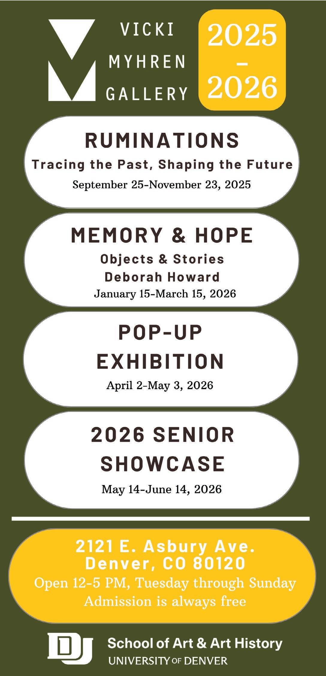 Along with performances by our talented students in the Lamont School of Music and DU Department of Theatre, there is something for everyone to explore and enjoy. Thank you for your continued support of this incredible center.