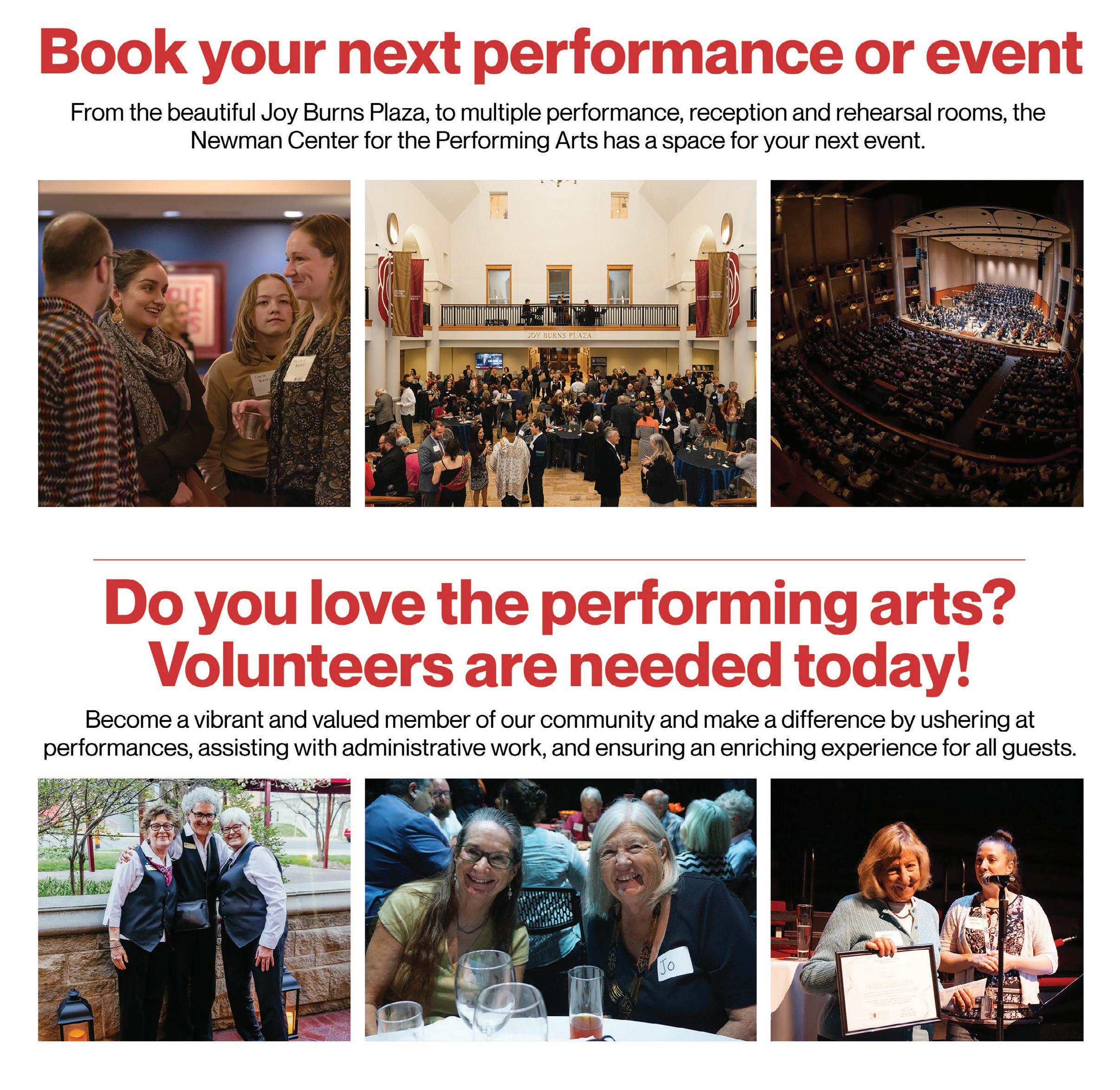 The Newman Center offers many ways for you to enrich your experience of the live show. We offer guided tours of the Newman Center, artist Q&As, a Cultural Diplomacy series, and so much more. To stay in the loop, sign up for our e-newsletter at newmancenterpresents.com and follow us on Facebook, Instagram, and LinkedIn.