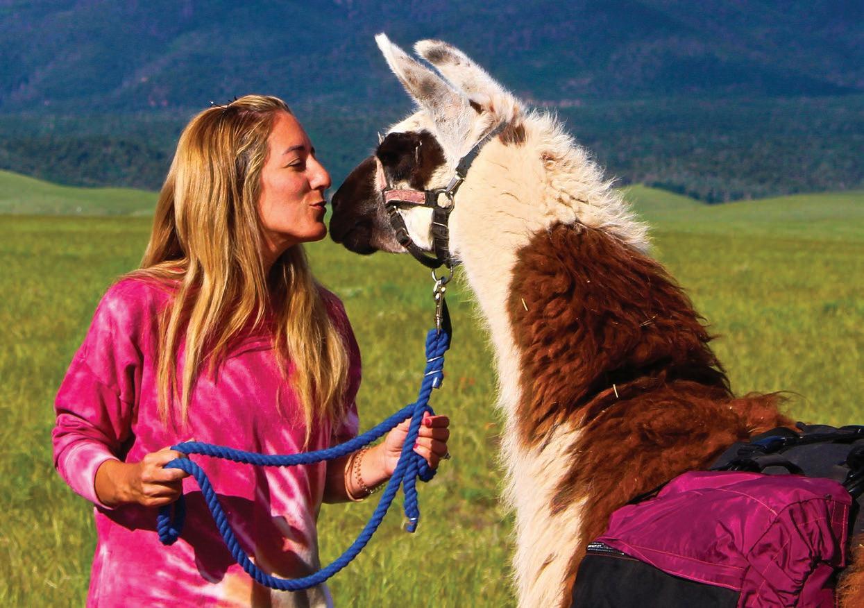 The fluffy animals have mellow personalities. They bond easily with people and are quick learners when being used as pack animals. Depending on the breed, each llama can carry 60-80 pounds of gear. “Llamas are a mix of dependable and adorable,” said Brianna Evert, owner of Lookin’ Up Outfitters. “It’s good to see people bond with the llamas during hikes.”