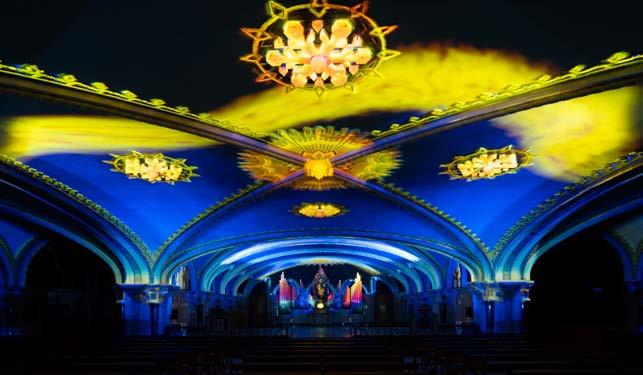 Créée par BADANG, un atelier de création basé sur la Côte-de-Beaupré et fondé par les artistes Hubert Gagnon et Maxime Petitclerc, l’installation transforme l’espace sacré en un lieu de recueillement lumineux. Inspirés par la beauté de la chapelle bleue, les concepteurs ont imaginé des tableaux monumentaux où la lumière et le son s’entrelacent pour magnifier la richesse patrimoniale du site.