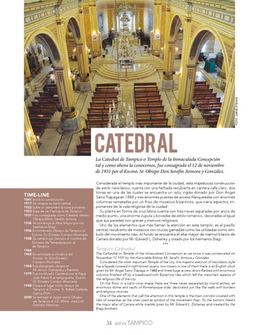 Catedral La Catedral de Tampico o Templo de la Inmaculada Concepción tal y como ahora la conocemos, fue consagrada el 12 de noviembre de 1931 por el Excmo. Sr. Obispo Don Serafín Armora y González.