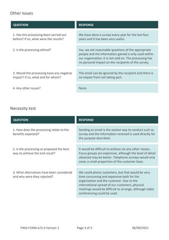 Sending an email is the easiest way to conduct such as survey and the information received is used directly for the purpose described.