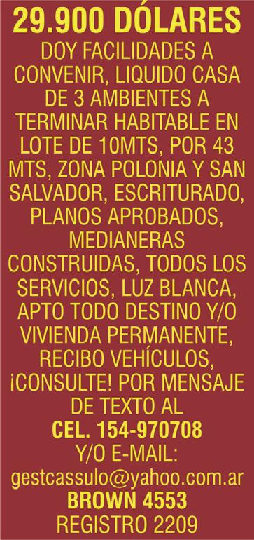 CASA ent. aut., liv., coc., baño, dorm., t. serv. z/Ituzaingó 7000 $250.000 2236825760