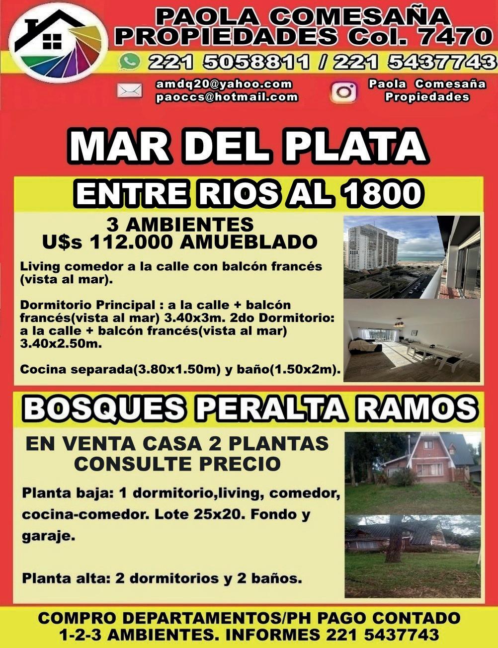 alta, 2 dorm., 2 baños, consultas Paola Comesaña Propiedades col 7470 / 2215058811 / 2215437743