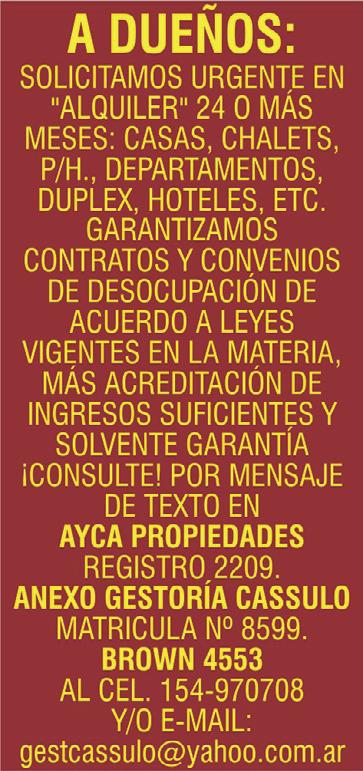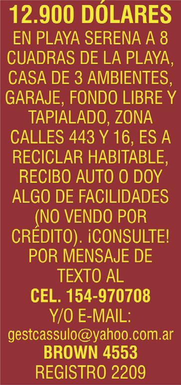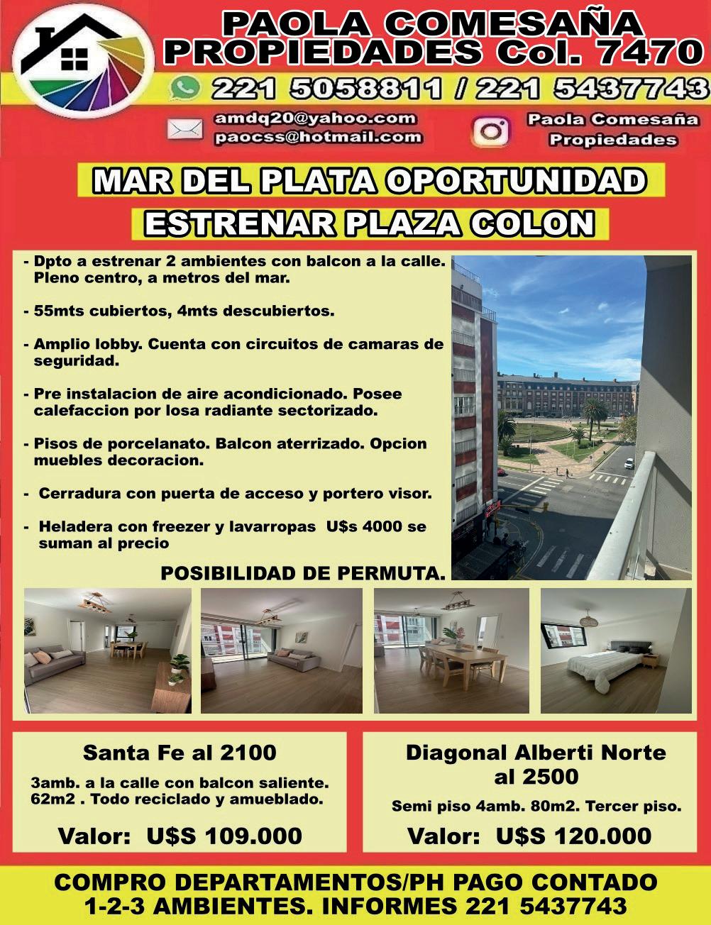 $39.000. se piden recibos de sueldo en blanco, contrato 24 meses reajustables cada 4 meses informes Paola Comesaña Propiedades col 7.470 visitas 2215058811 / 2215437743
