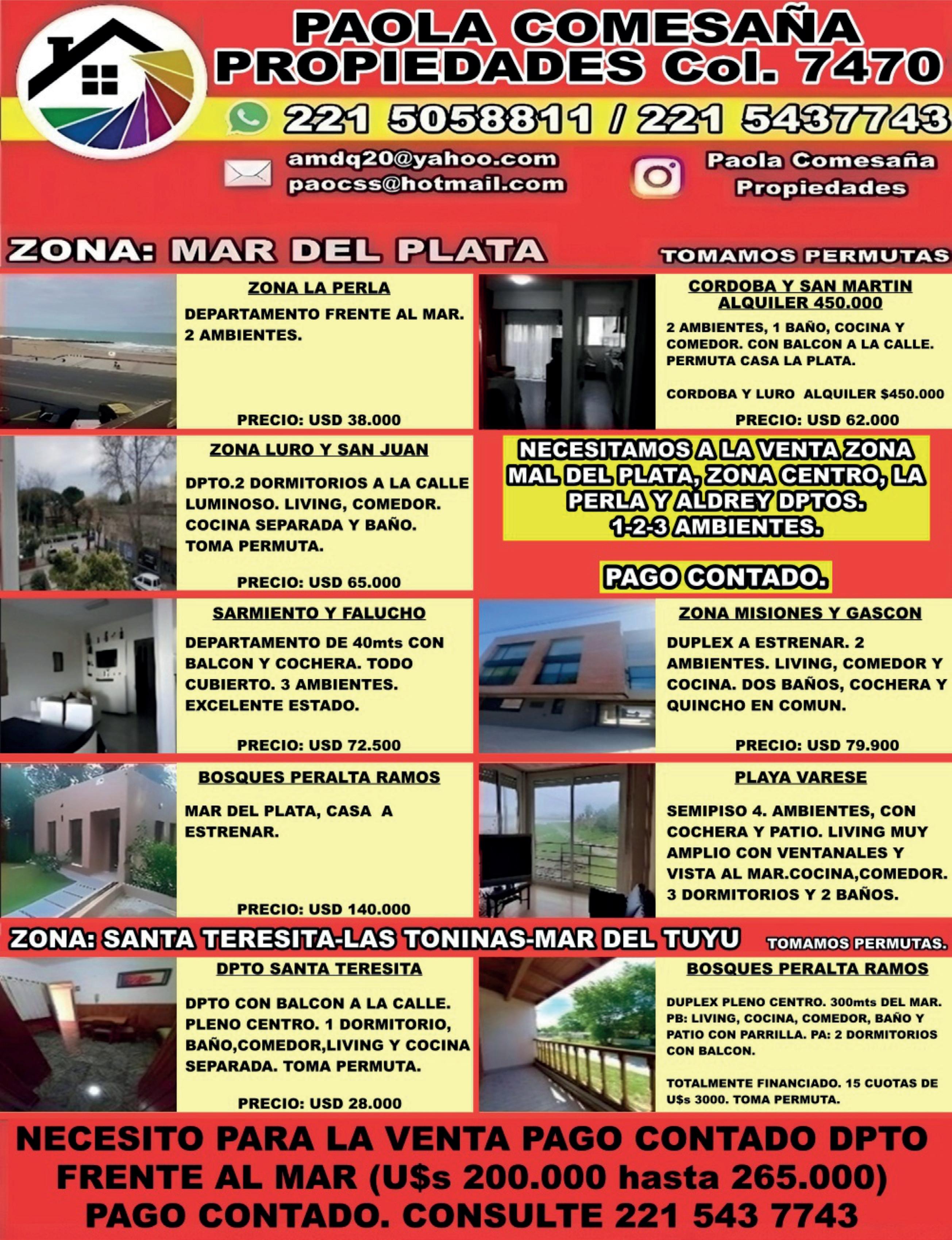 5 amb. no centro, sin garantía 24 meses +54 9 2236 84-1596
